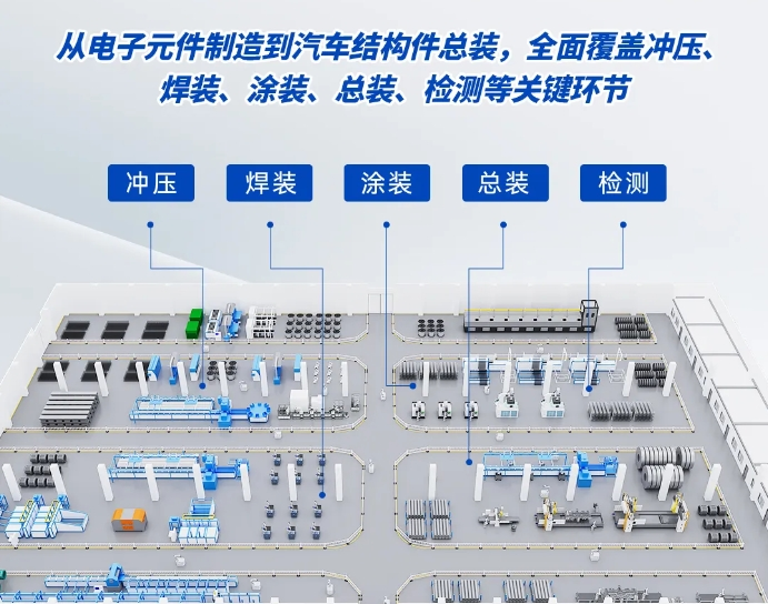 人類的工作過程存在局限性,而協作機器人沒有誤差且不受限制。汽車制造在多個應用場景中都需要部署機械臂,如機床上下料、貼標、噴漆、組裝等。越疆機器人以高精度、更安全、柔性化、高性能的產品優勢,已經廣泛應用到從汽車部件加工到整車總裝生產的各個關鍵工藝,助力汽車制造實現全場景高水平自動化,顯著提升了汽車智造生產效率與產品質量,為員工打造安全的工作環境,并持續推動其向前邁進。越疆機器人已經在汽車領域積累了大量的實例經驗,助力奔馳、大眾、別克、雷諾、馬自達、北汽福田、法雷奧、比亞迪、寶馬、保時捷、吉利、豐田、上汽通用汽車、上汽通用五菱、尼桑、斯巴魯等汽車頭部企業,在沖壓、焊裝、涂裝、總裝、檢測環節實現全場景高品質自動化。