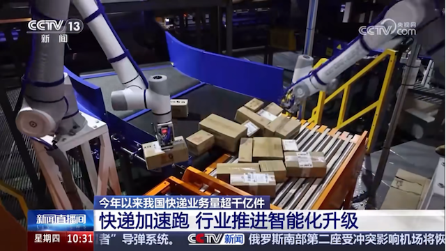 - 物流與倉儲:在物流與倉儲領域,協作機械臂能夠快速、準確地完成貨物的裝卸和碼垛任務,提高物流效率。國產協作機械臂以其高效、靈活、安全的特點,逐漸成為物流行業的理想選擇。近日,央視新聞報道了中國郵政的智能化升級成果,其中由越疆機器人提供的智能機器人雙臂協同操作解決方案成為報道焦點。在中國郵政供件線上,機器人賦能物流效率提升50%、準確率達99.9%的顯著成效,向全國觀眾展現了中國智慧物流的科技實力與創新成果。