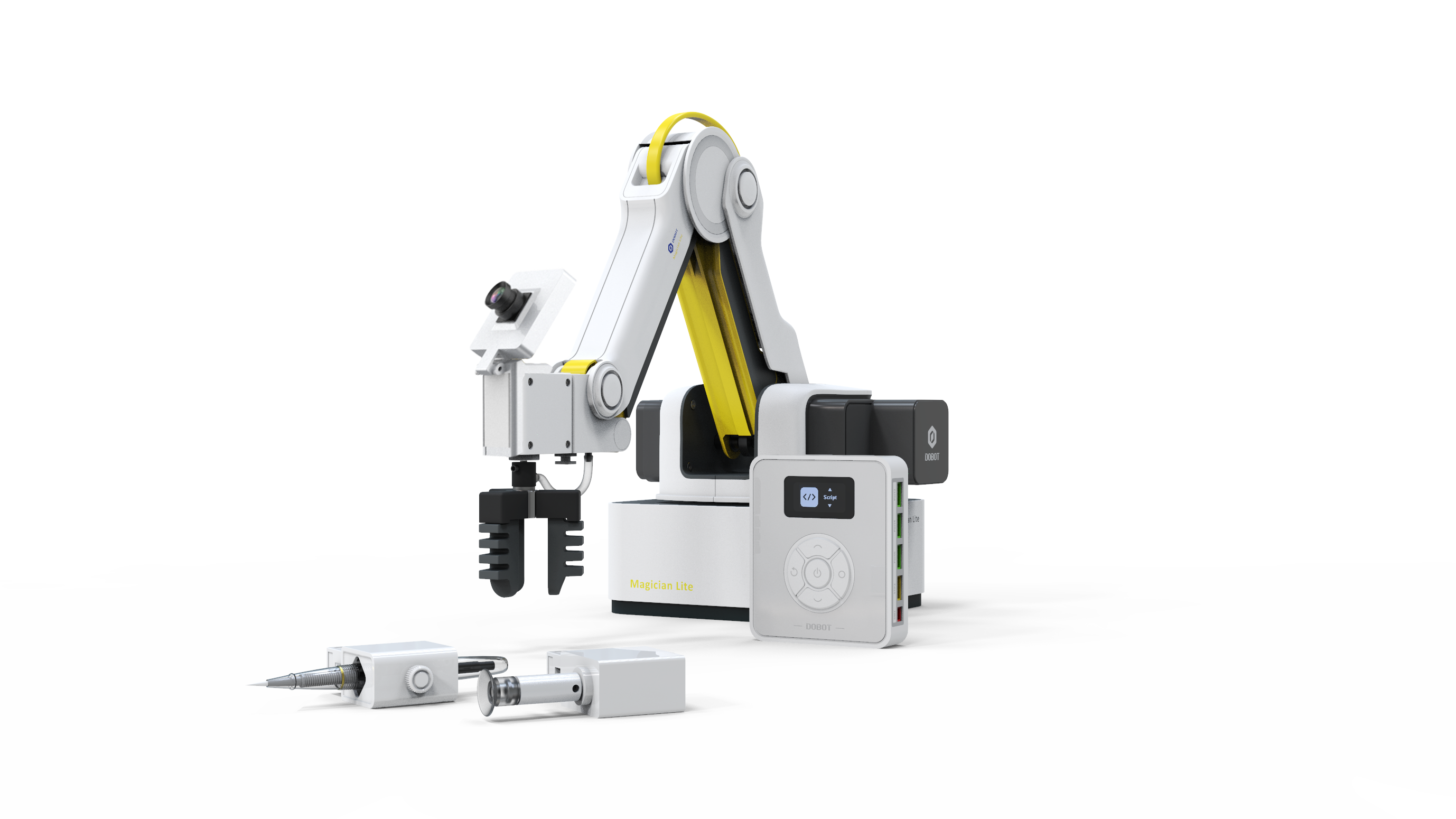 在產品研發方面,越疆科技堅持自主研發,重磅打造面向中小學人工智能教育生態的核心產品 DOBOT Magician Lite,它具有安全靈活、無限拓展及開放兼容等特點。它體積精巧,易于部署,完美適應課桌尺寸,降低教學空間要求,相較于其他機器人形態更適合大班課堂教學;支持碰撞檢測,遇阻即停,確保學生學習過程的安全;末端可替換,可擴展性強,輕松執行更多教學任務;拓展接口豐富,支持二次開發,擴大了學生創新應用的空間;兼容圖形化編程與 Python 編程,易教易學,滿足全齡段學習需求。