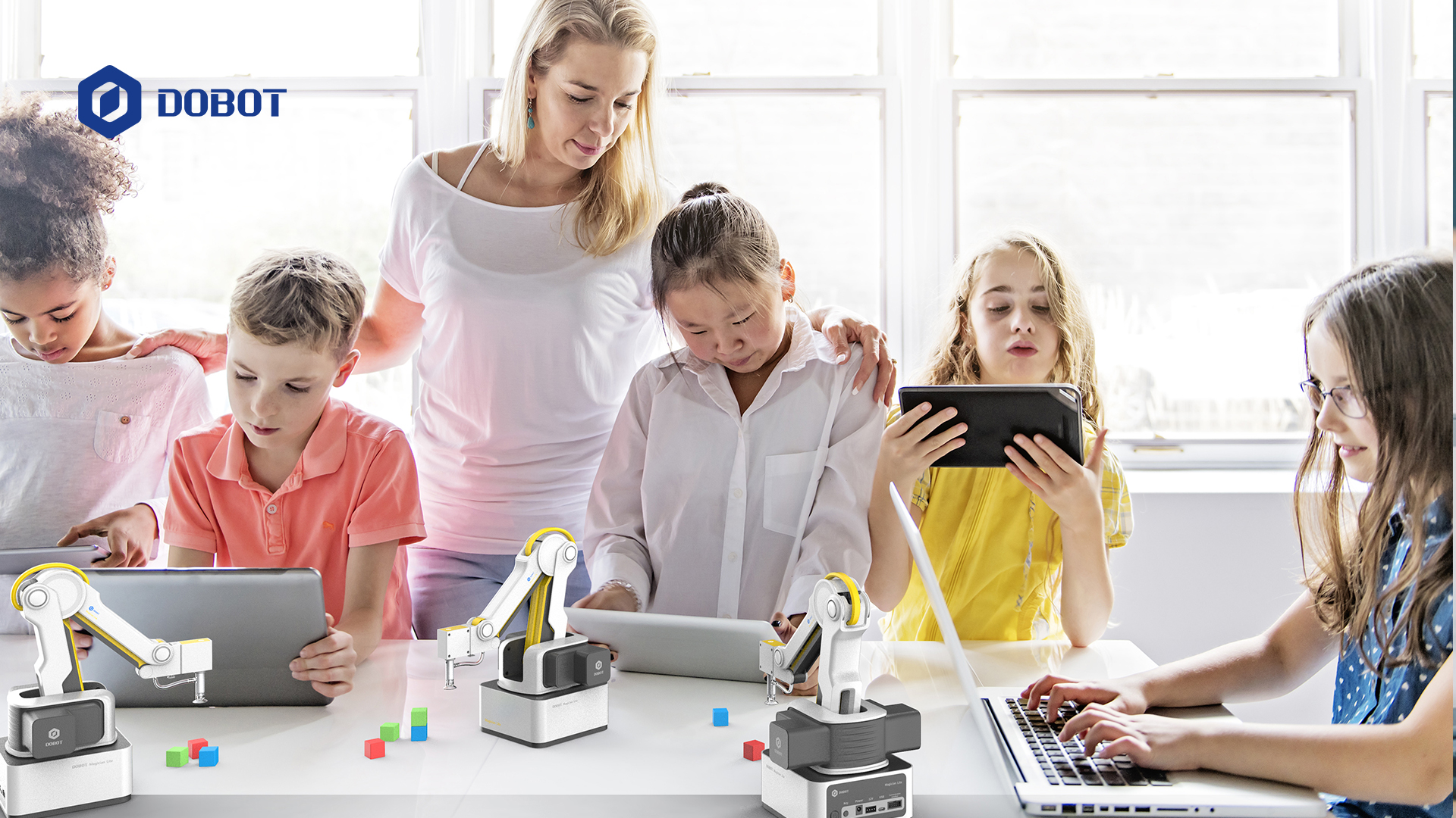 人工智能并不是某一種單純的技術,而是多個學科交叉后的領域,包括視覺識別、語音識別、算法、機器學習等,而要教授如此龐雜的知識,需要一個能直觀反映學習效果的載體去承接。DOBOT Magician Lite 作為支持碰撞檢測的桌面級教育機械臂,通過打造富有代入感的微縮沉浸式 AI 應用場景,幫助孩子更好地理解 AI+ 機器人在現實工作生活中的應用,進而促進孩子對現實問題的思考,啟發孩子對解決問題方法的思考。