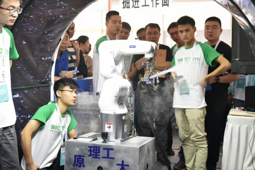 隨后,在 2019 世界機器人大賽機器人工業設計大賽冠軍挑戰賽的現場,魯昕會長向學生們詳細了解了 RFID 外殼定制及視覺檢測封裝流水線、超市智能散裝稱重系統、糖畫 DIY 機器人、智能涂膠機器人、基于磁阻變化的鐵氧體磁環表面缺陷無損檢測系統等工業機器人的設計思路與商業價值,并親自投票最具商業價值獎、最佳藝術獎、最佳創意獎的作品,鼓勵各院校師生們繼續努力。