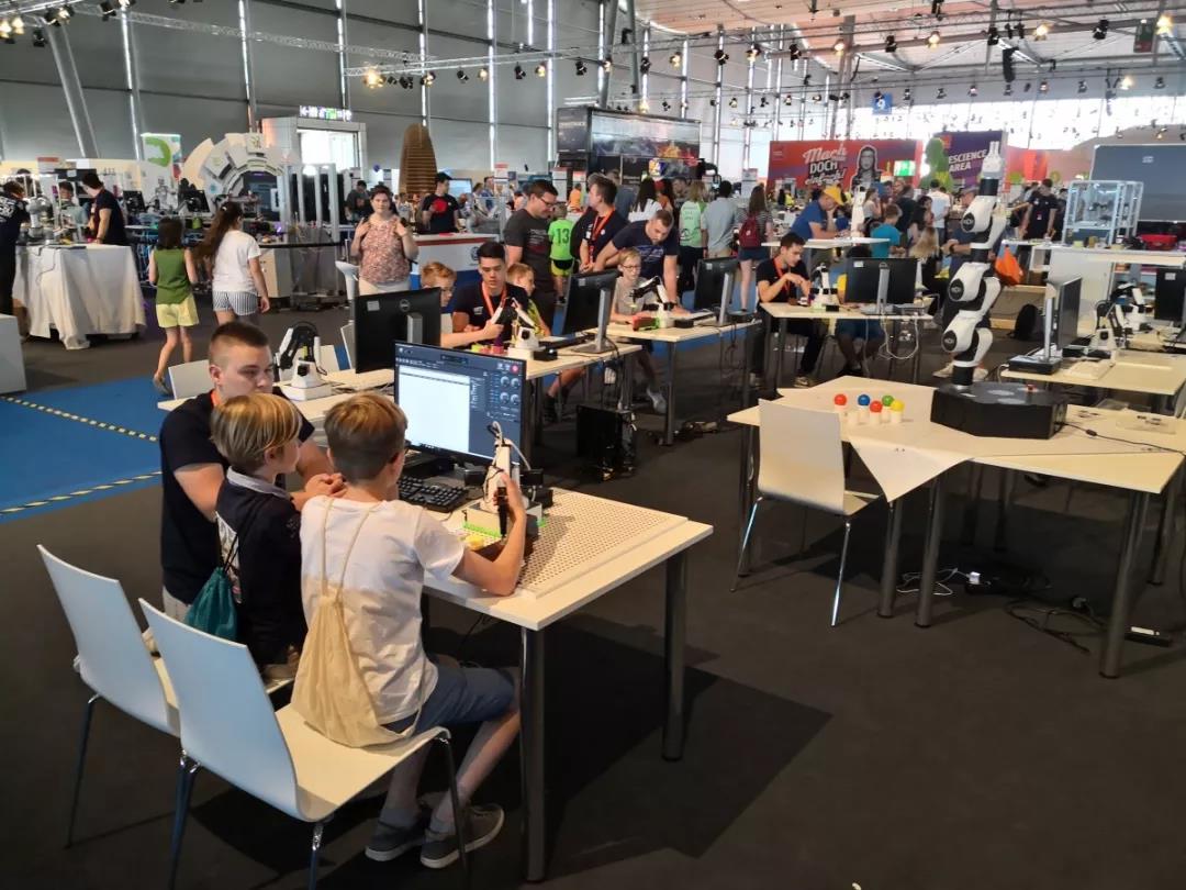 6 月 15 — 23 日,大眾汽車在德國 Ideen Expo 上展示了 Dobot 魔術師,現場,中小學生們通過實際動手體驗軟硬件相結合的輕量型智能實訓機械臂 Dobot 魔術師,初步了解人工智能與機器人原理及技術應用,更加形象地理解汽車自動化生產過程。