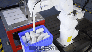 越疆獨豹 SR 系列工業機械臂搭載 3D 視覺引導系統,可對散亂、無序堆放的目標物品精準定位、抓取和分揀。該套系統通過 3D 深度相機獲取物體表面輪廓點云數據,對點云數據進行智能分析處理,計算出當前物件的實時坐標,加以機器人路徑自動規劃、自動防碰撞技術,實時引導機器人自動抓取。