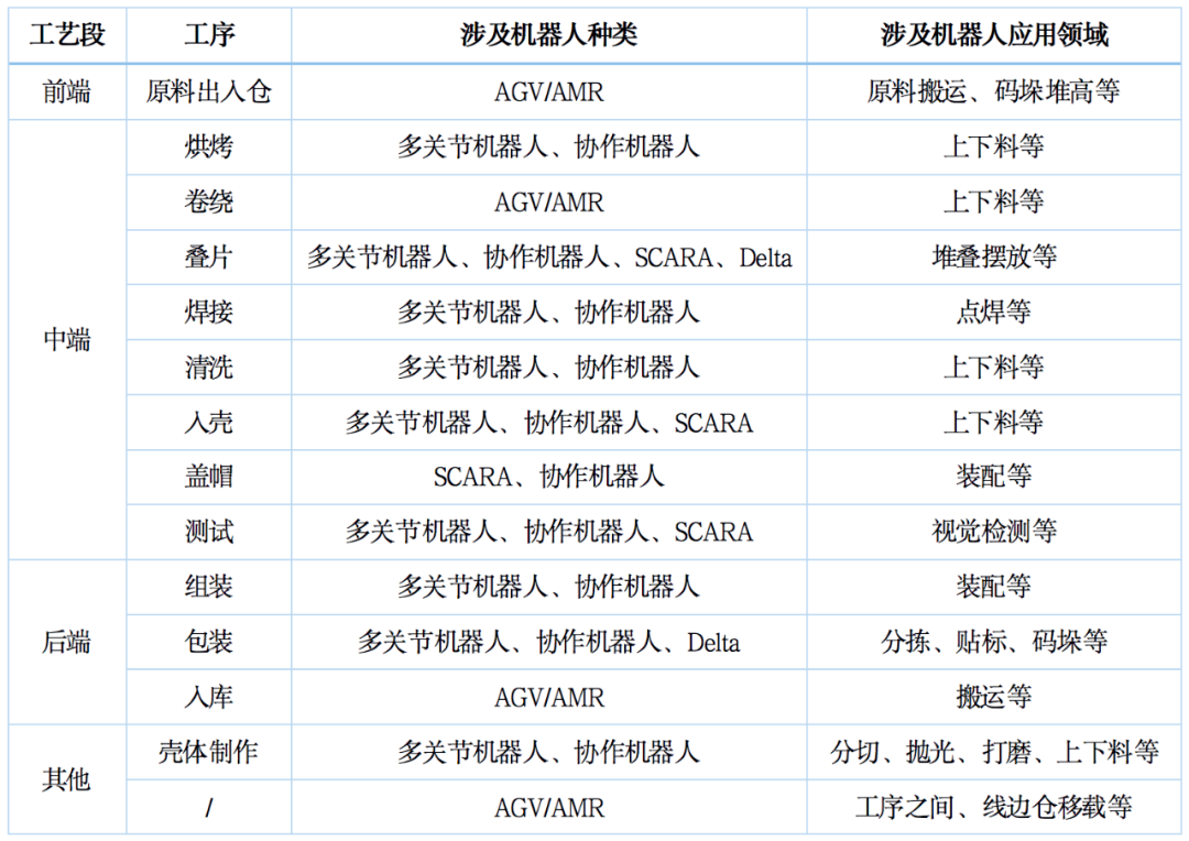 電池生產(chǎn)環(huán)節(jié)機(jī)器人應(yīng)用種類(lèi)及領(lǐng)域