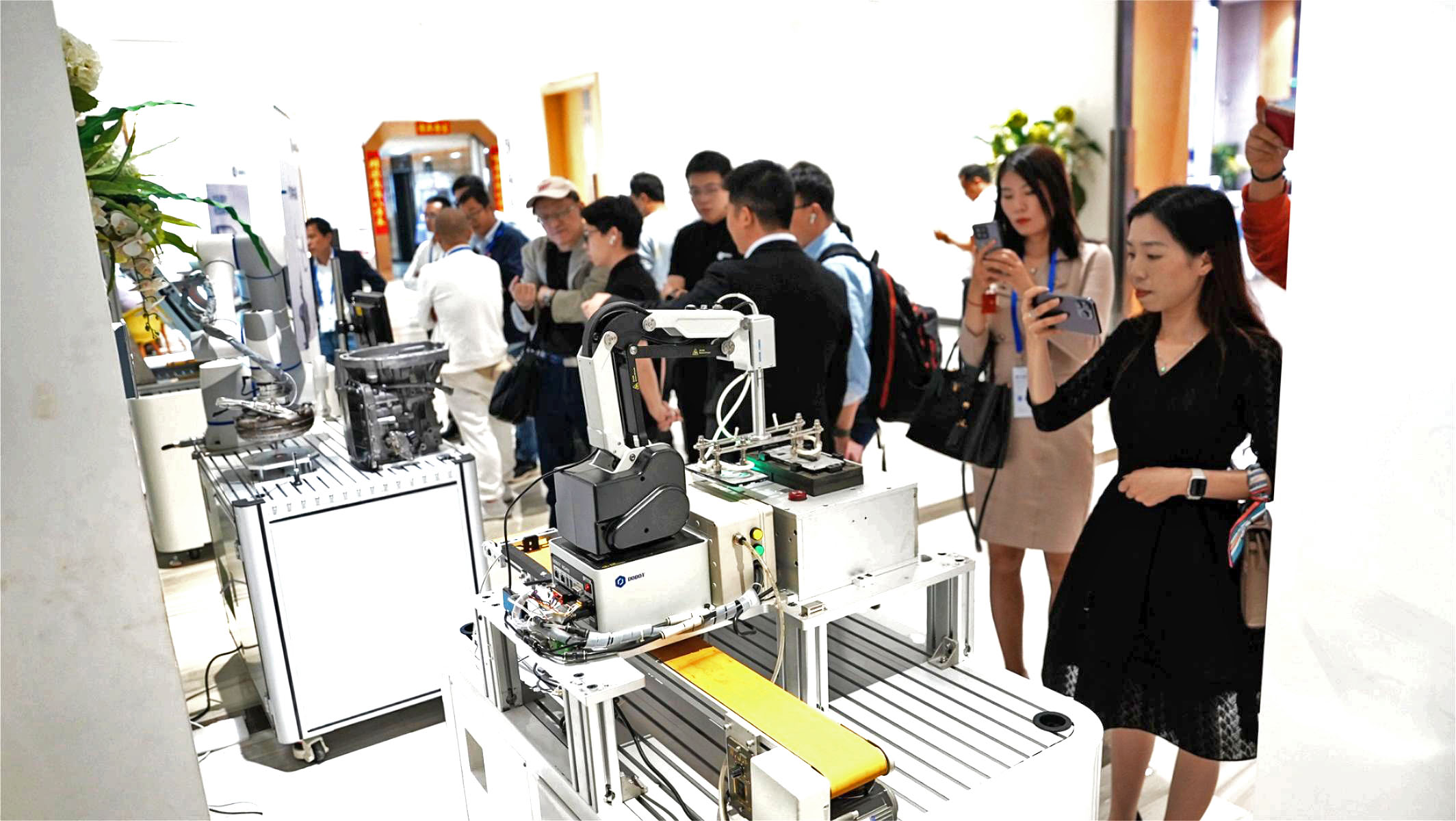 研討會現(xiàn)場還展示了越疆機(jī)器人在 3C、汽車等行業(yè)中的典型應(yīng)用,包括螺絲鎖附、筆記本外殼打磨、SIM 卡分揀、手機(jī)中框檢測、汽車視覺缺陷檢測、汽車零部件裝配等,參會嘉賓直觀感受到協(xié)作機(jī)器人在易編程、易部署、安全性等方面的優(yōu)勢。