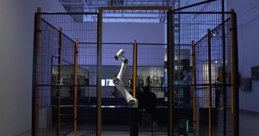 越來越多的藝術家和策展人開始思考機器人與社會的融合,知名藝術家鄧碧文借助越疆協作機器人創作了《被限制的極限》。在這當中,程序對應的是思想,機械運動對應的是肉身,現場是一個在牢籠中不斷挑戰自己機械運動極限的協作機器人在「亂舞」。